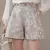 Floral Jacquard High Waist A-Line Shorts with Metal Buttons